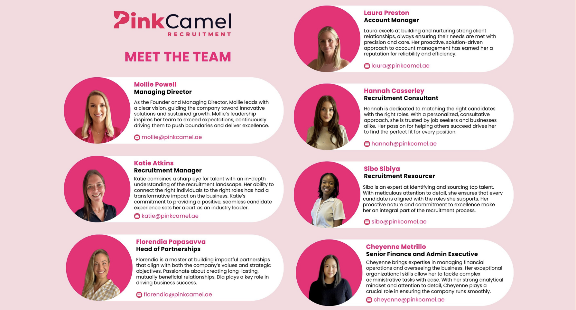 Pink Camel Recruitment is an award-winning agency, founded in the UAE and specialists within permanent and contract hiring across MENA. A true value-driven business trusted by employers across all industries, we pride ourselves on delivering exceptional talent that drives business success.